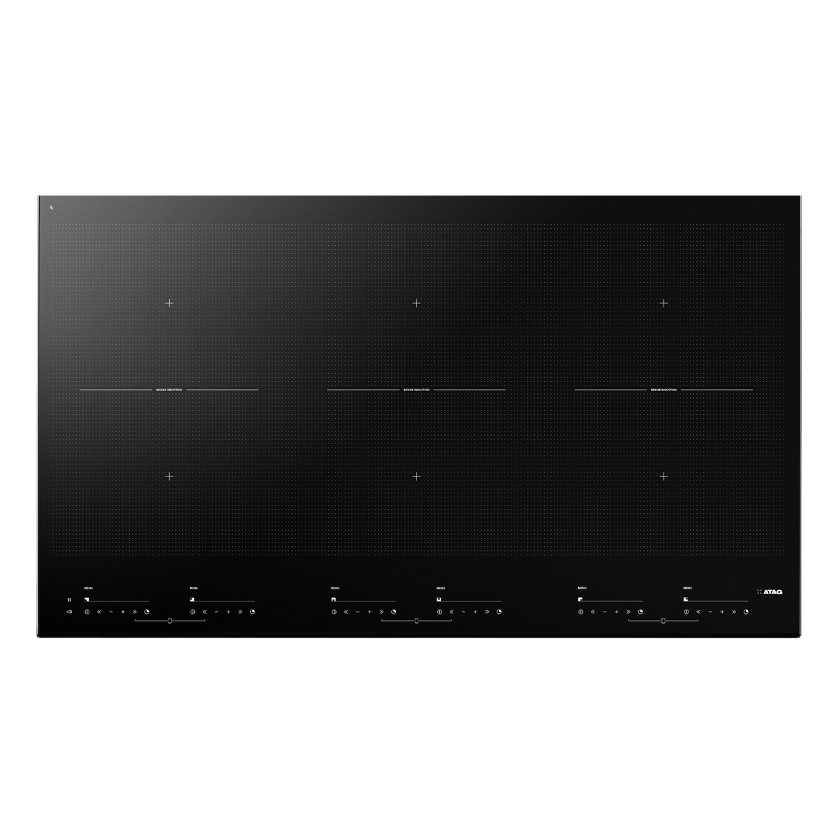 - door twee Bridge Induction zones (voor en achter) aan elkaar te koppelen ontstaat er één grote kookzone van 22 x 40 cm
