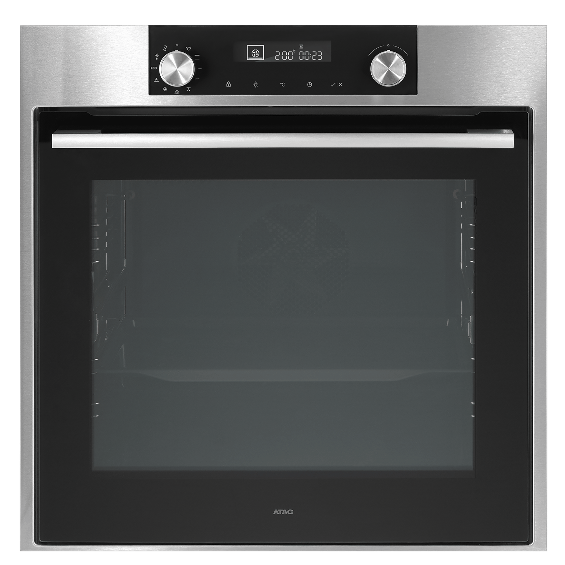 - 8 ovenfuncties: hetelucht, Eco-hetelucht, grote grill, kleine grill, grill + ventilator, onder- en bovenwarmte, onderwarmte + ventilator, onderwarmte + hetelucht